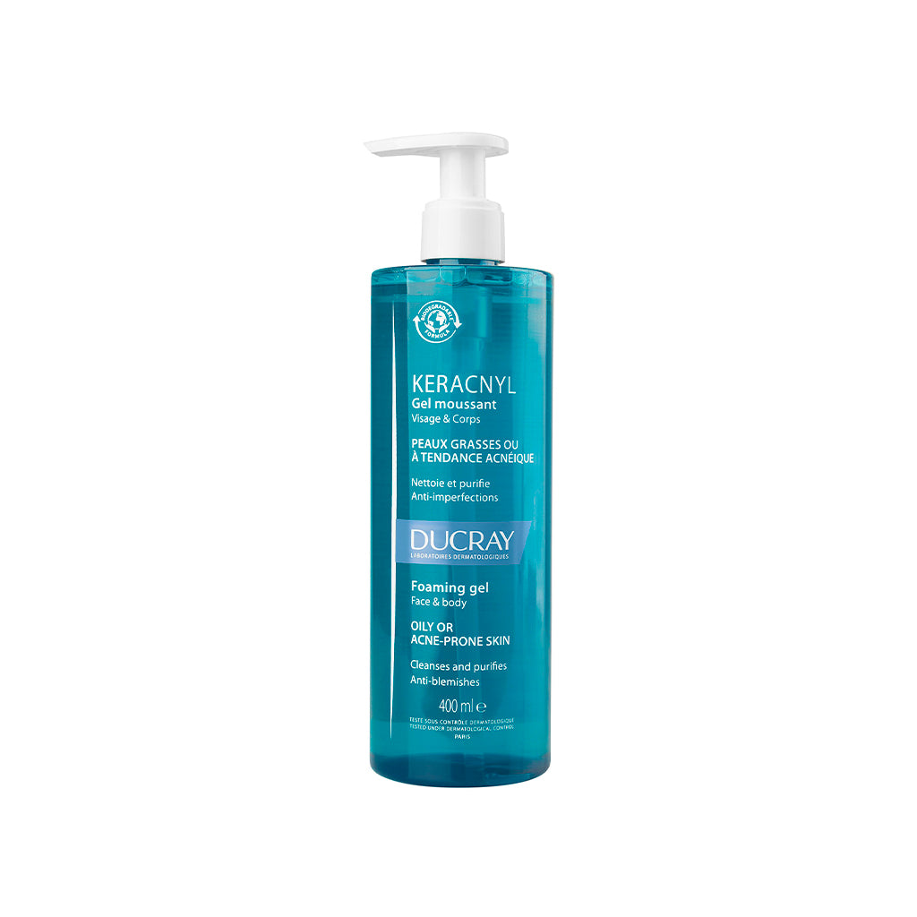 Para la limpieza facial y corporal diaria adecuada para piel grasa y/o con tendencia acneica en adolescentes y adultos. Puede usarse en preadolescentes a partir de los 9 años. Ayuda a reducir las imperfecciones después de 7 días. La fórmula sin jabón limpia y purifica suavemente el rostro y el cuerpo. Probado en asociación con tratamientos tópicos y orales. Muy buena tolerancia cutánea