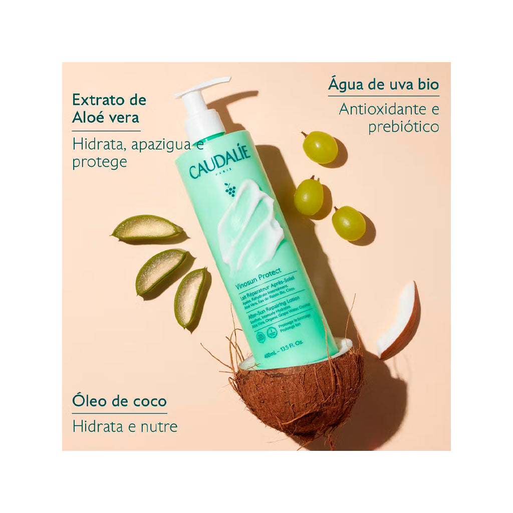 Para el rostro y el cuerpo, Vinosun Protect Leche Reparadora After-Sun nutre, repara y calma la piel caliente después de cada exposición al sol, a la vez que prolonga el bronceado 2 semanas. Enriquecida con extracto de aloe vera, su textura no pegajosa ofrece una sensación inmediata de frescor y deja la piel suave, hidratada y delicadamente perfumada.