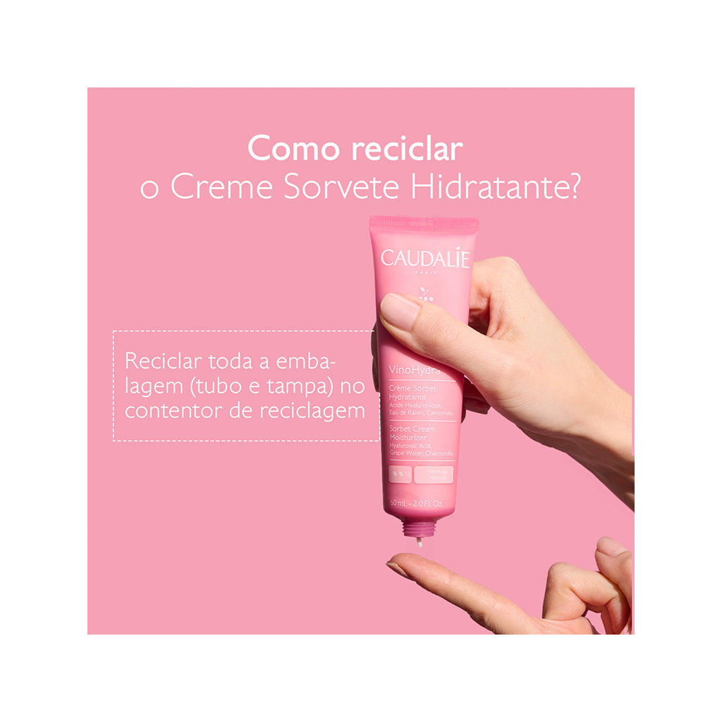 La Crema Sorbete Hidratante VinoHydra hidrata, calma y refuerza las defensas naturales de la piel fragilizada. Desde la aplicación, disminuye la sensibilidad cutánea y el enrojecimiento. Su textura fresca como un sorbete y ultraligera se funde instantáneamente en la piel, haciéndola ideal para piel normal, incluso sensible.